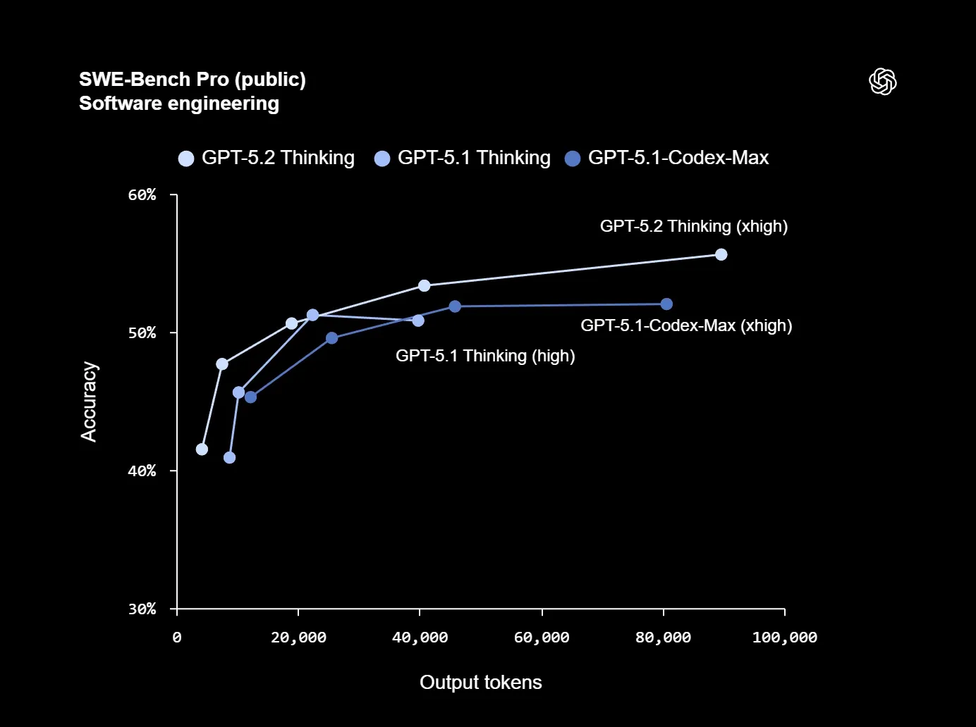 On SWE‑bench Pro, GPT‑5.2 Thinking reportedly hits 55.6%, a new high for real‑world repository bug fixing.